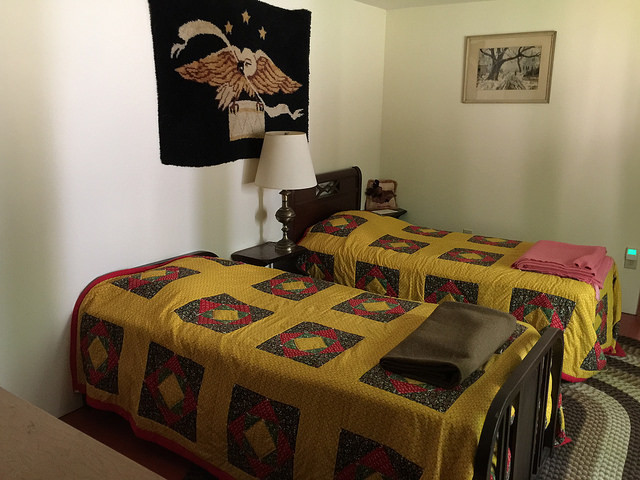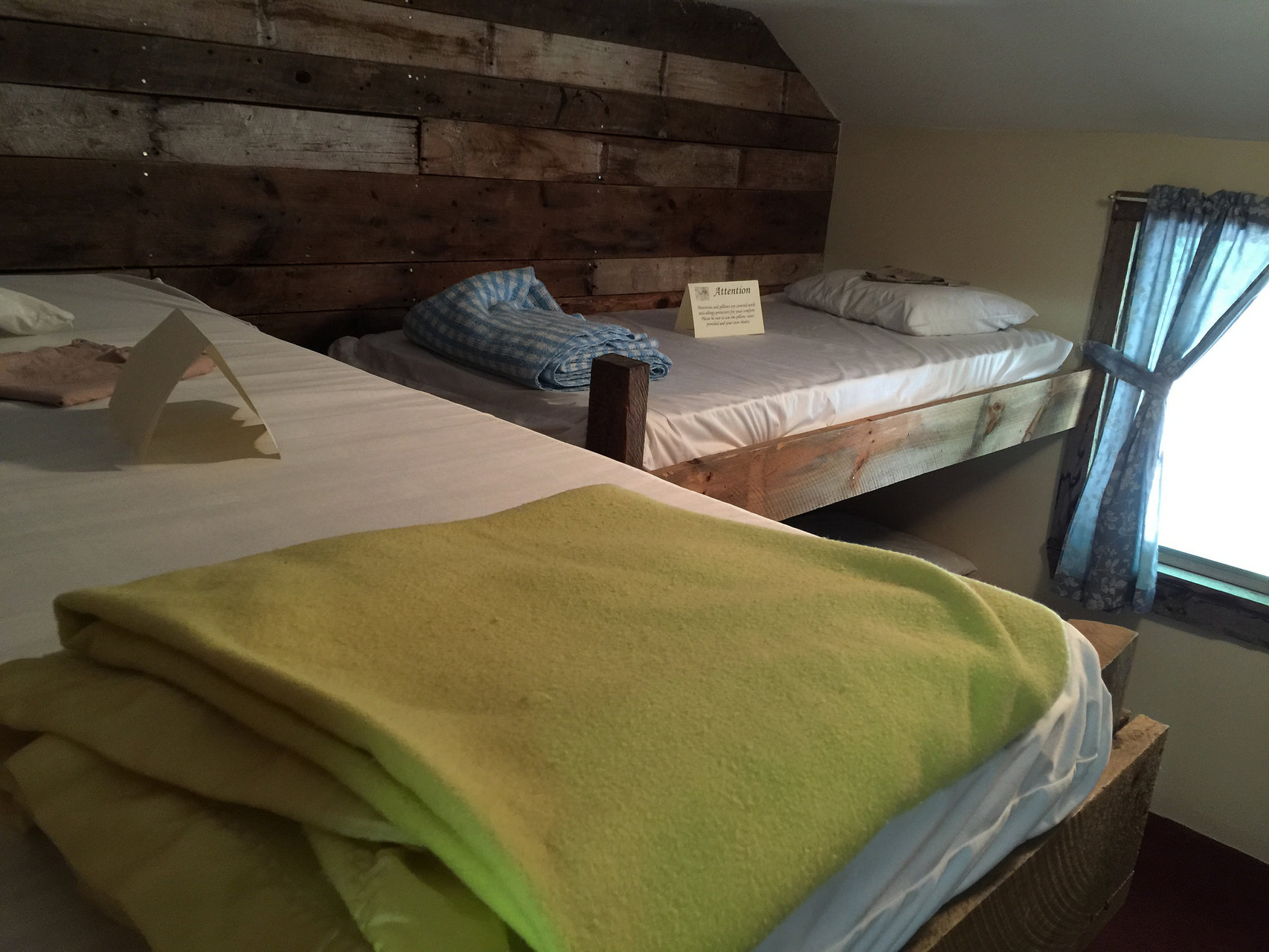 Rustic bunk rooms for twenty-four with built-in wooden bunks and additional roll-away beds;
